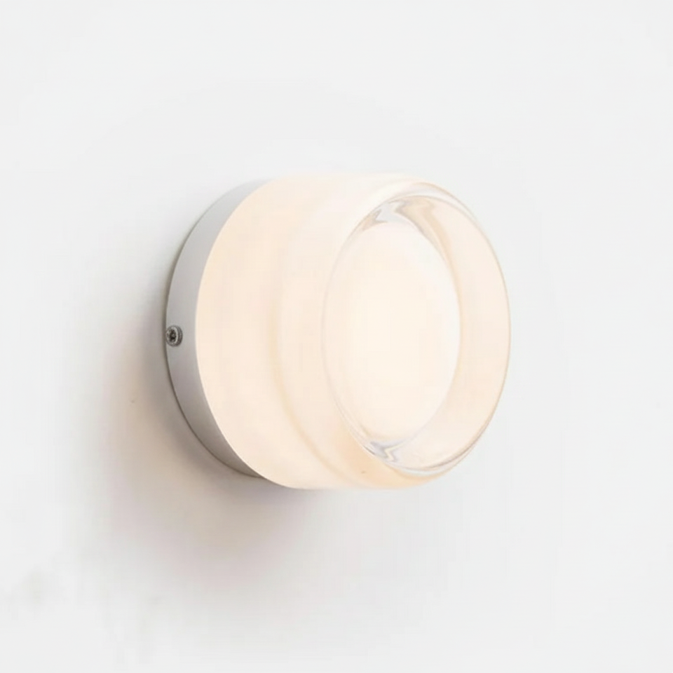 Diese runde Wandleuchte verbreitet ein sanftes, beruhigendes Licht und verleiht dem Raum sofort eine wärmere und einladendere Atmosphäre. Das opale Acrylglas erzeugt einen wunderschönen Diffusionseffekt, verteilt das Licht gleichmäßig und harmonisch und schafft so eine ruhige Stimmung. Die klaren Linien lassen die warmen Lichtreflexe besonders gut zur Geltung kommen und verleihen den Wänden subtile Tiefe.