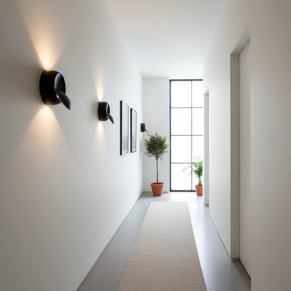 Verleihen Sie Ihren Räumen Modernität und Präzision mit der um 350° drehbaren LED-Wandleuchte , die für flexible und raffinierte Beleuchtung konzipiert ist. Dank des um 350 Grad schwenkbaren Kopfes können Sie das Licht genau dorthin richten, wo Sie es haben möchten, und so ein funktionales und elegantes Ambiente schaffen.