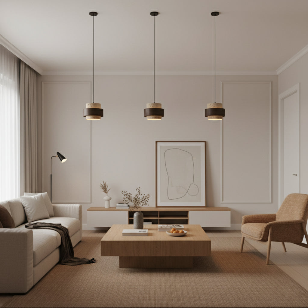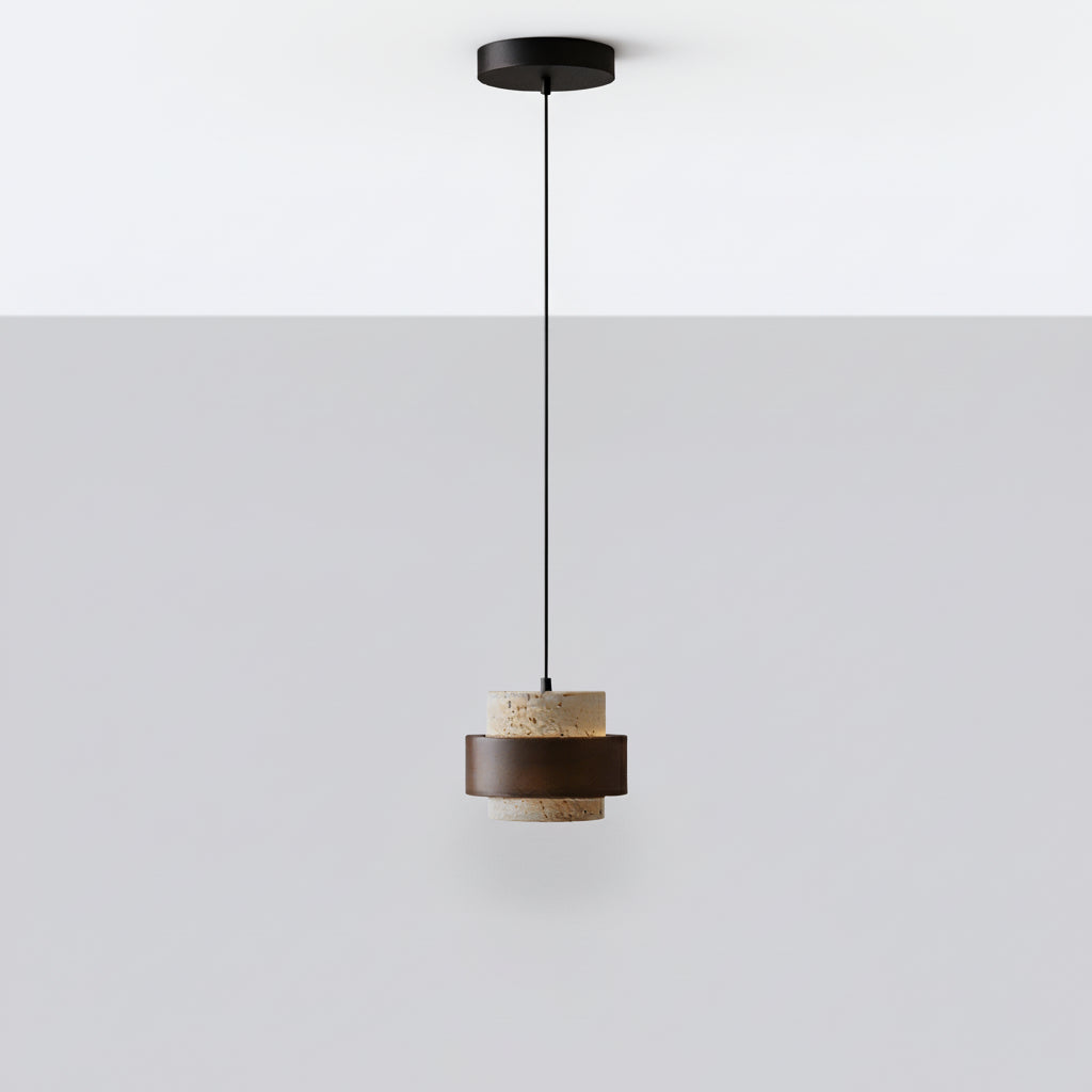 Retro-LED-Pendelleuchte aus Holz und Stein