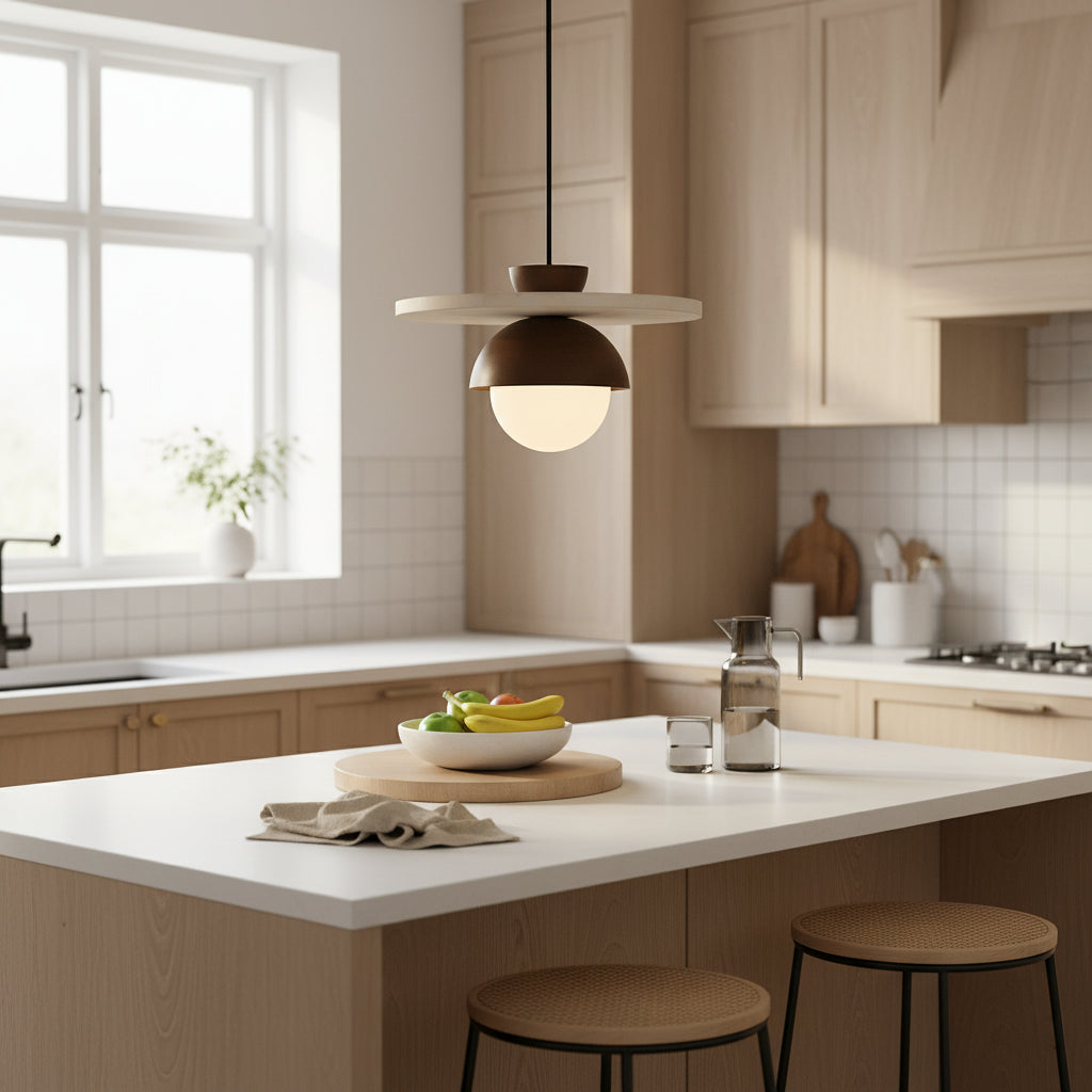 Verleihen Sie Ihrem Interieur mit der LED-Pendelleuchte im Nordic Creative Design eine elegante und moderne Note . Sie besteht aus Stein und Holz und kombiniert die Noblesse natürlicher Materialien mit einem schlichten und modernen Design, wobei sie ein weiches und beruhigendes Licht verbreitet.