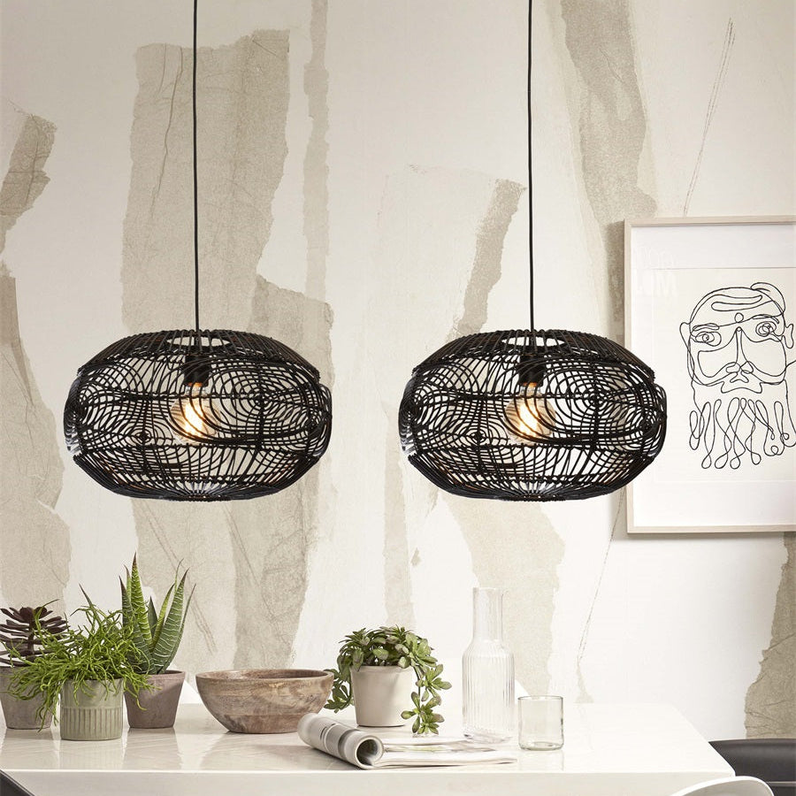 Madeira Rattan Pendelleuchte Schwarz 48 cm