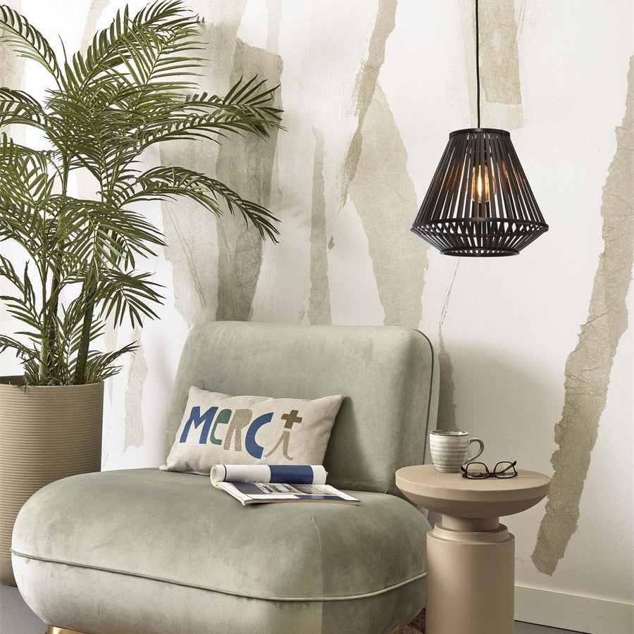 Der robuste Eisenrahmen stützt das Bambusgeflecht perfekt und sorgt so für optimale Haltbarkeit und unterstreicht gleichzeitig das raffinierte Design. Das praktische und diskrete 2 m lange schwarze Textilkabel ermöglicht eine einfache Höhenverstellung für eine perfekte Positionierung.