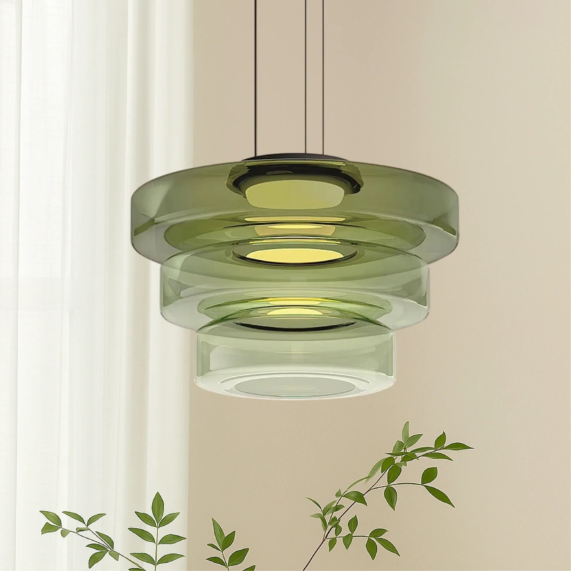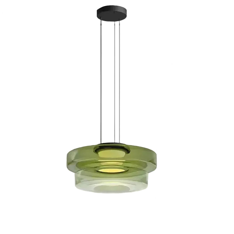 Diese Pendelleuchte ist in zwei- oder dreiringiger Ausführung erhältlich und spendet ein sanftes, einladendes Licht – ideal, um eine warme Atmosphäre zu schaffen, ohne den Raum zu erdrücken. Erhältlich in Orange, Grün oder Rauchgrau, wird sie zu einem echten Dekorationselement, das die Raumwirkung im Handumdrehen verändert.