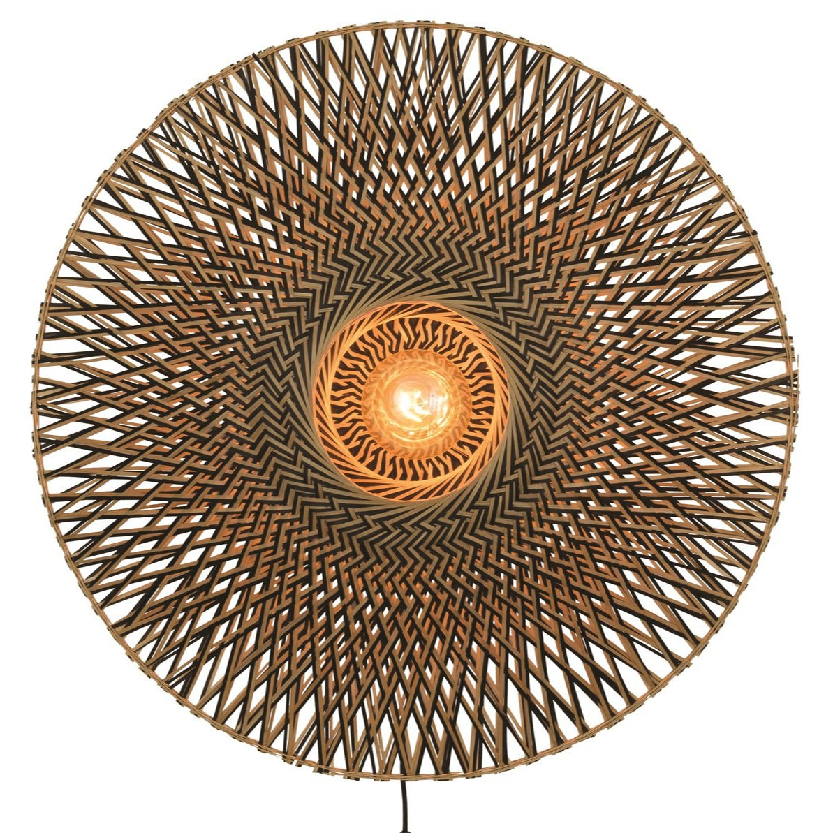 Its solid iron structure ensures a lasting stability , while the handcrafted weaving of the bamboo creates a refined shadow play that enhances your walls. Its 2.5 m black textile cable, equipped with a manual switch, allows for simple installation and practical everyday use.