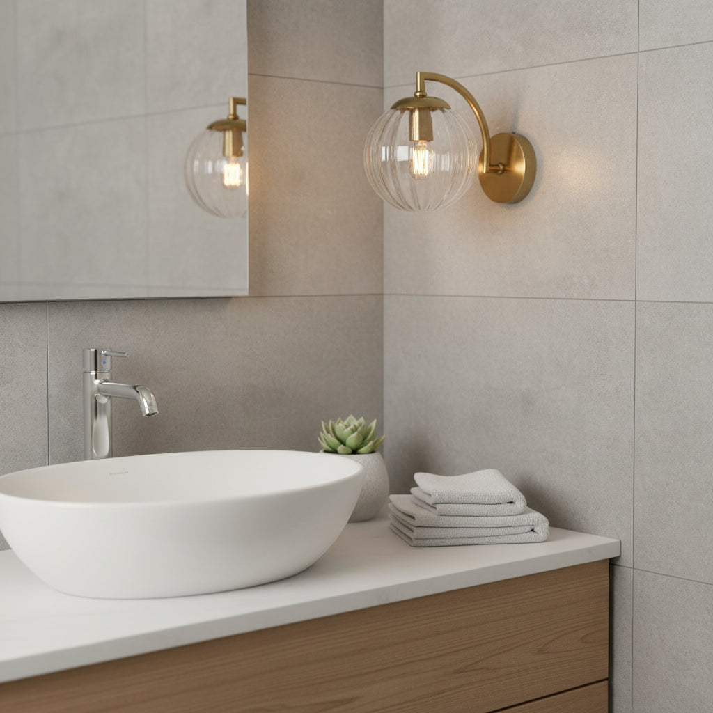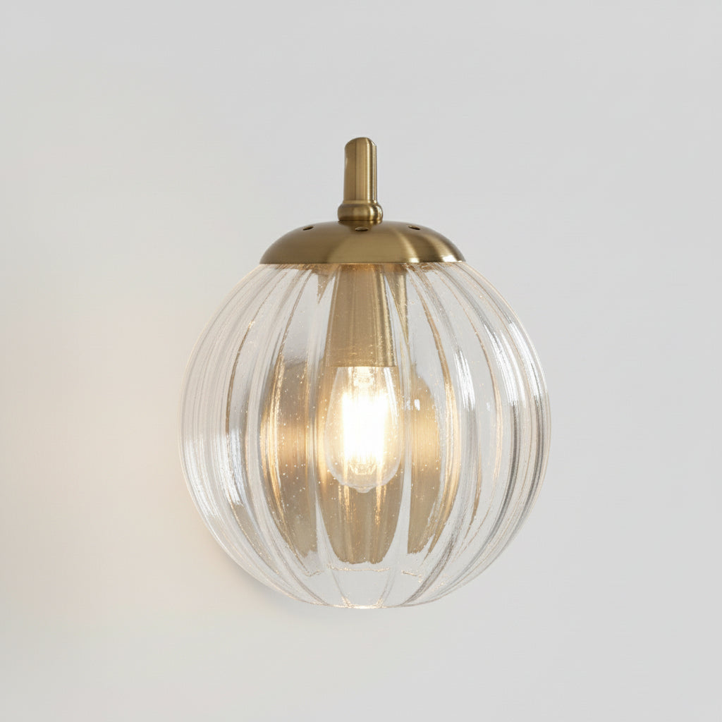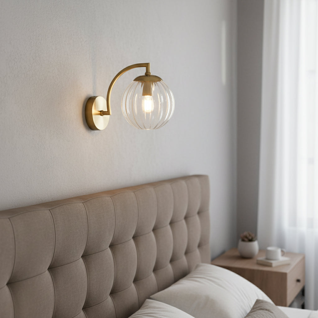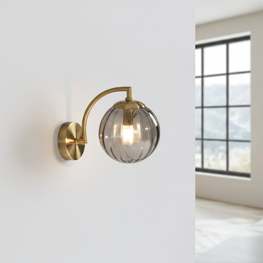 Bring a refined and contemporary touch to your interior with the Glass Ball Wall Light . Its elegant design combines a brushed gold metal structure with a tinted glass shade, creating a subtle contrast between modernity and timelessness. Ideal for the living room, bedroom, hallway or even an office, it diffuses a soft and warm light that enhances your spaces.