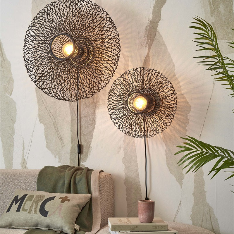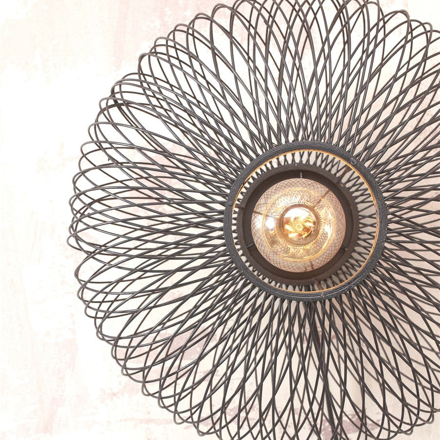 Its robust iron structure guarantees a lasting stability , while the handcrafted weaving of the bamboo creates a refined shadow play on your walls. Its 2.5 m black textile cable, equipped with a manual switch, facilitates installation and daily use.