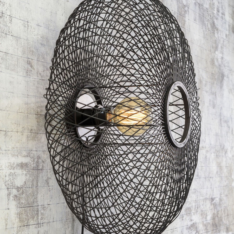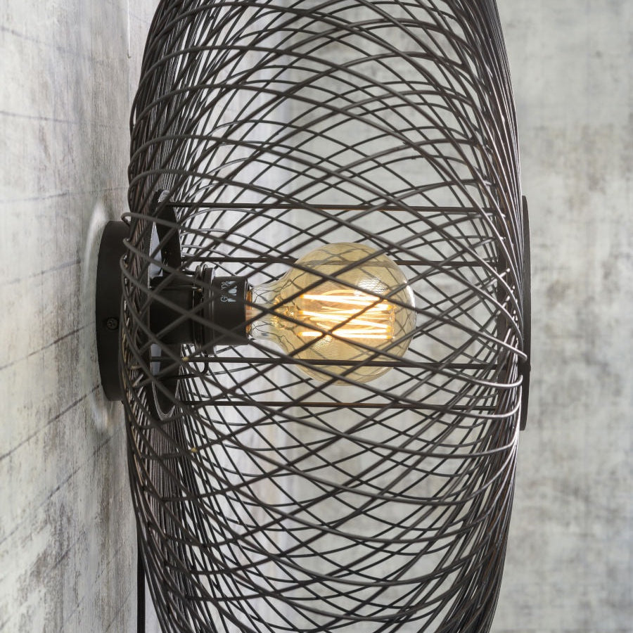 Its robust iron structure guarantees a lasting stability , while its oval design creates a elegant shadow play that enhances your walls. Its 2.5 m black textile cable, equipped with a manual switch, facilitates installation and daily use.