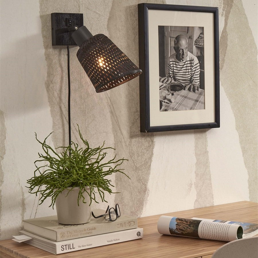 The sturdy bamboo structure guarantees a optimal durability , while the handcrafted braiding creates a refined shadow play on your walls. Its integrated switch on the wall plate and its 2.5 m black textile cable ensure simple installation and practical everyday use.
