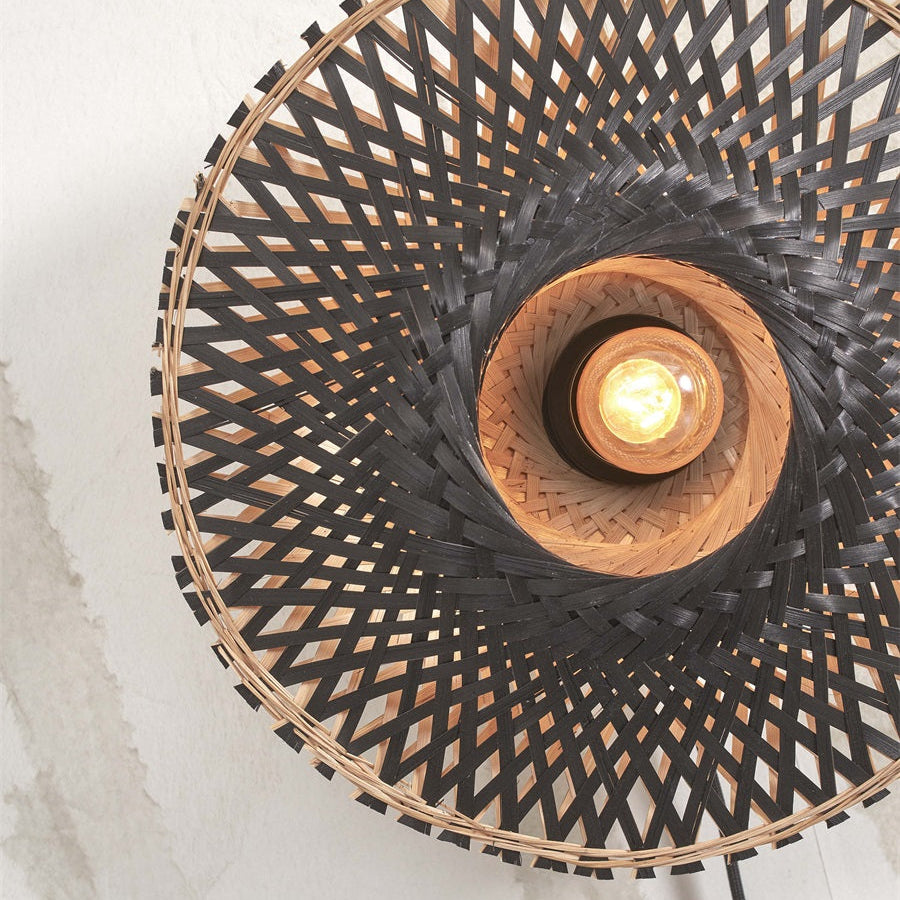 Enhance your spaces with the Kalimantan 87 cm wall light , a unique piece in woven bamboo and black iron which combines authenticity And contemporary design .