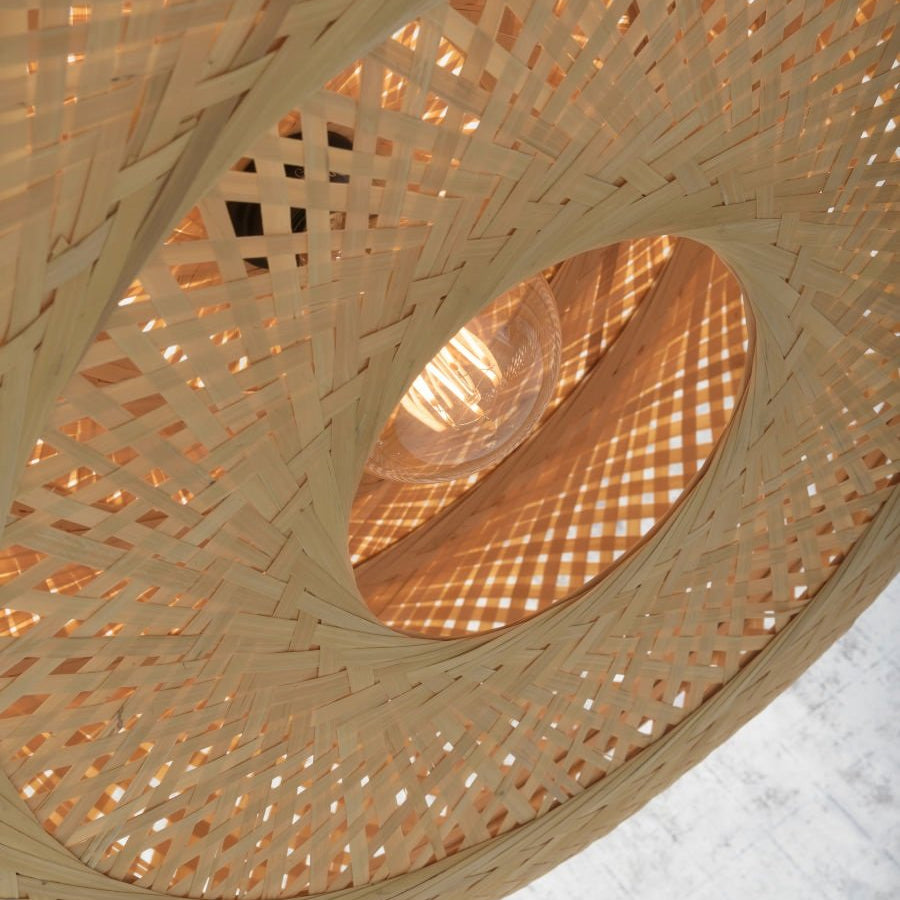 Its robust bamboo structure guarantees a lasting stability , while its generous shape creates a refined shadow play that enhances your walls. Its integrated switch on the wall plate and its 2 m black textile cable allow for simple installation and practical everyday use.