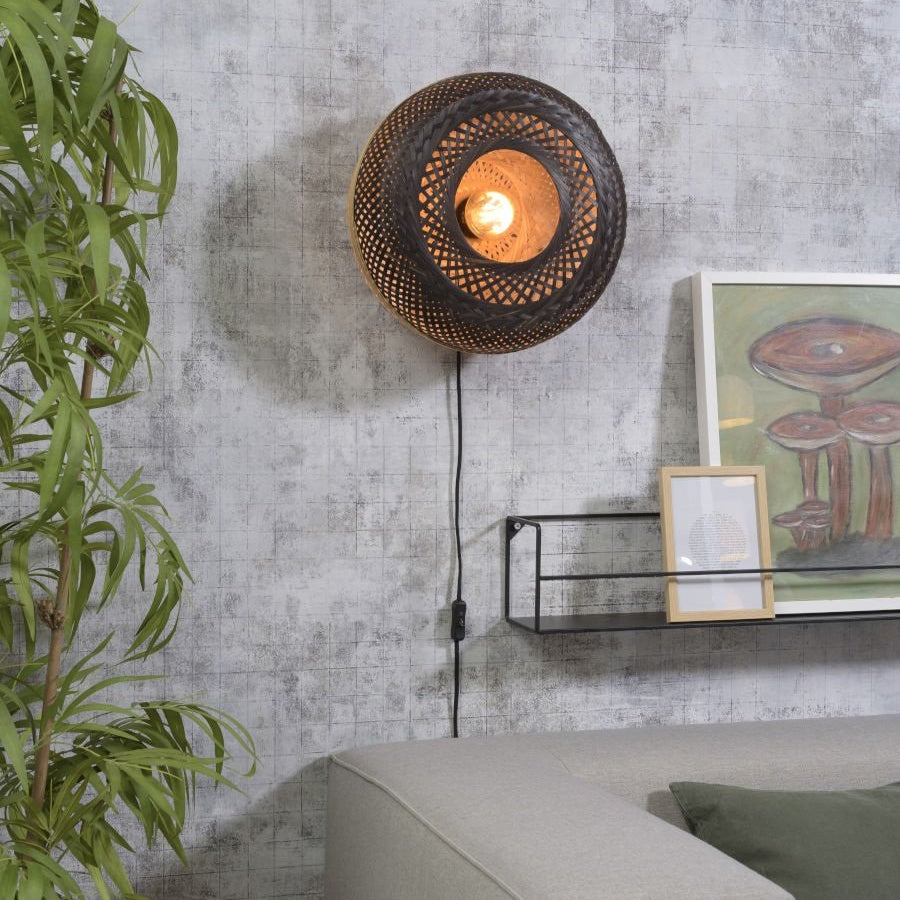 Its robust iron structure ensures a lasting stability , while its handcrafted weaving creates a refined shadow play that enhances your walls. Its 2.5 m black textile cable, equipped with a manual switch, facilitates installation and daily use.