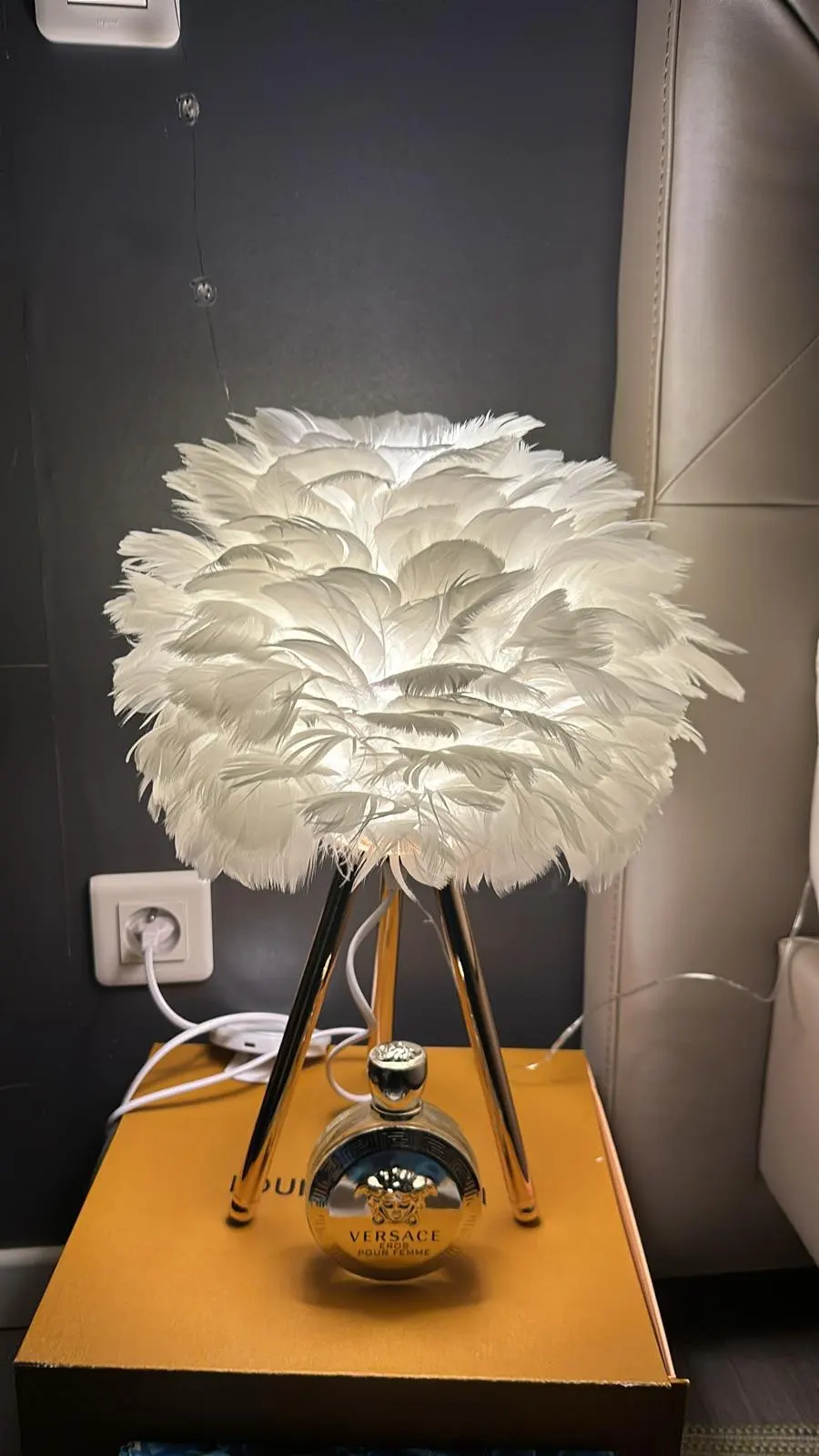 Bring a touch of lightness and romance to your interior with this Nordic feather lamp . Its airy white feather shade diffuses a soft and warm light , ideal for transforming the ambiance of your bedroom, living room or office.