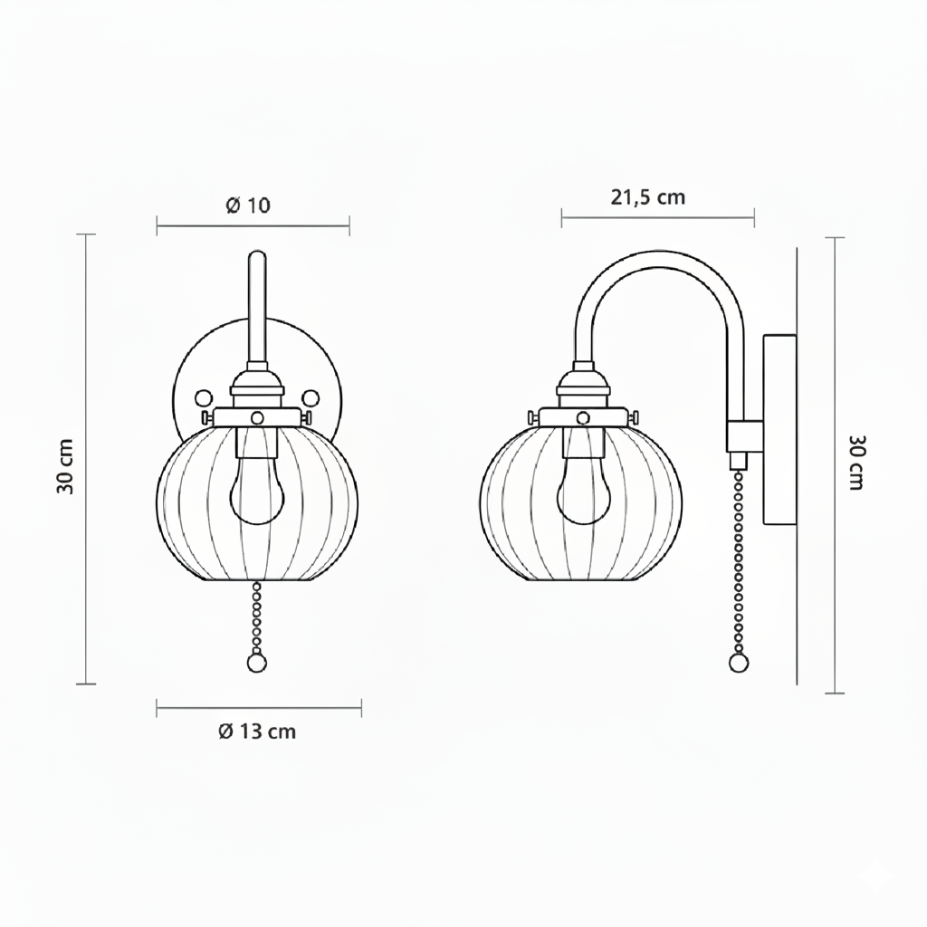 Son abat-jour en verre cannelé laisse filtrer la lumière avec subtilité, créant un jeu d’ombres raffiné sur les murs. L’interrupteur à chaînette ajoute une touche rétro chic, tout en offrant un confort d’utilisation au quotidien.