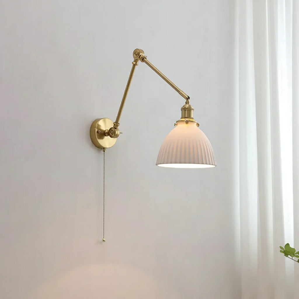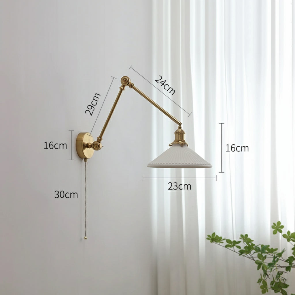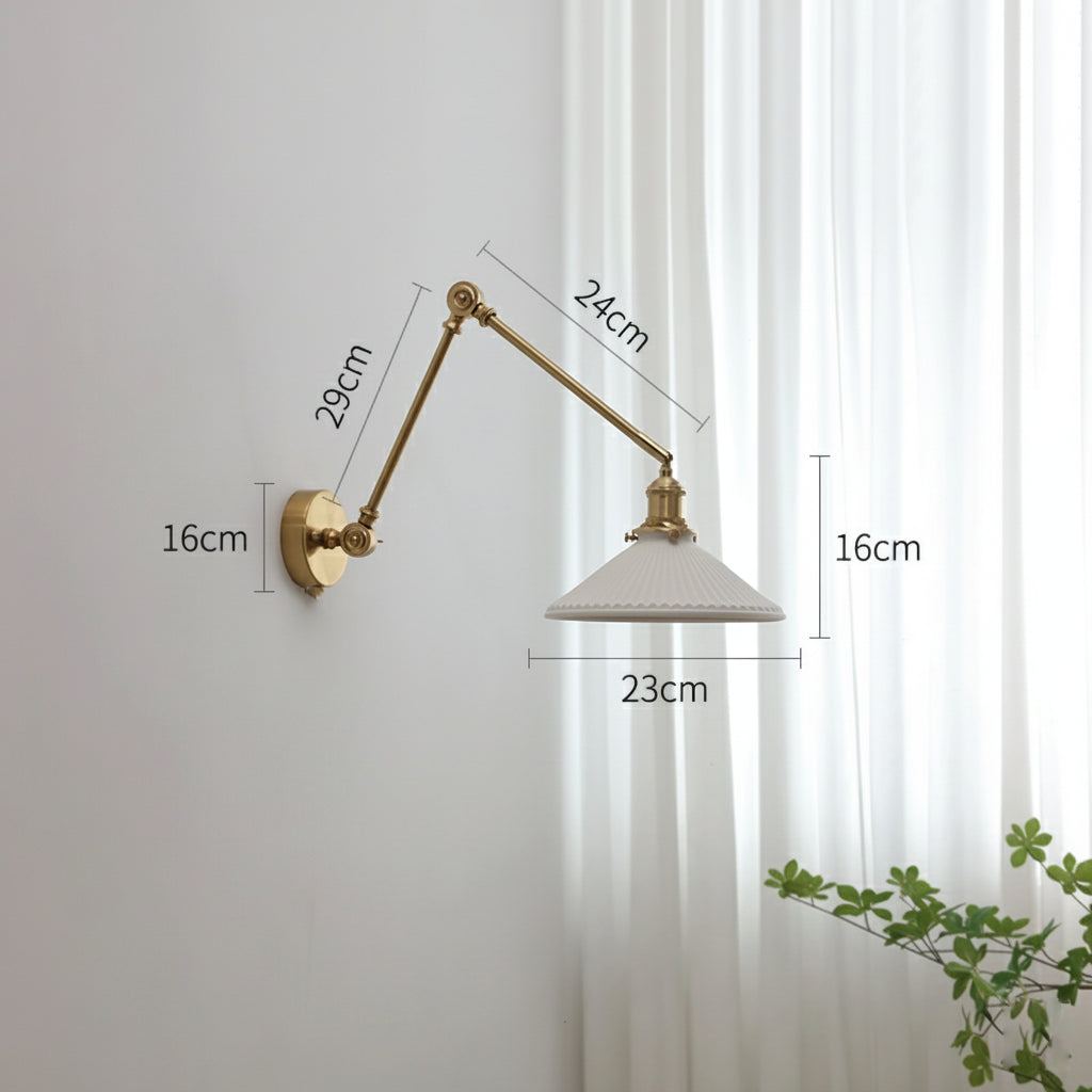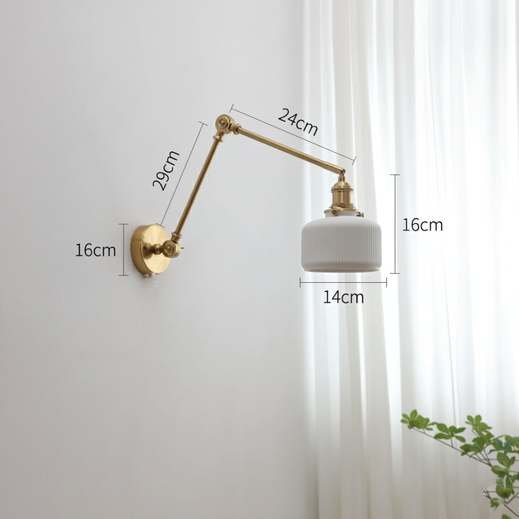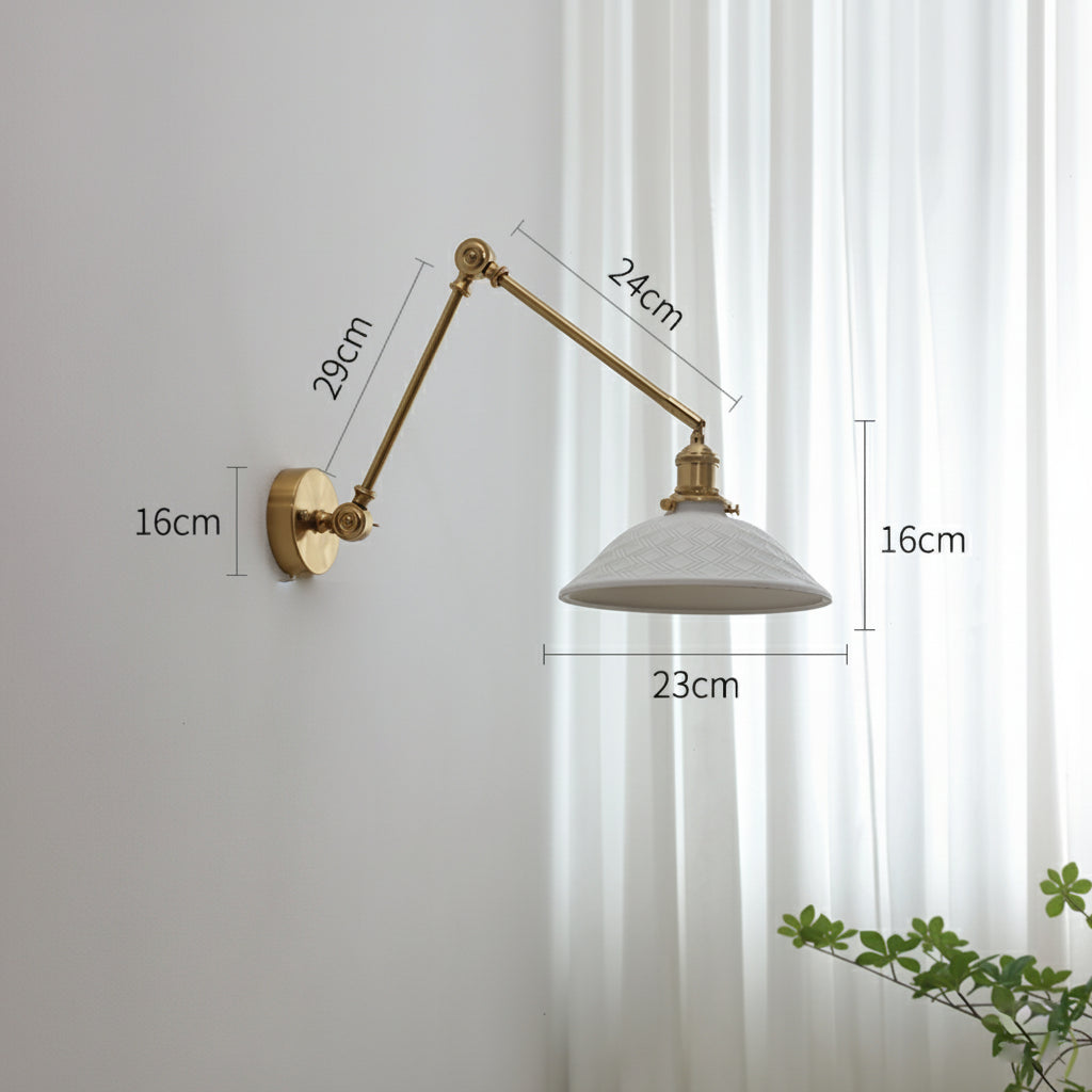 Apportez une touche de raffinement intemporel à votre intérieur avec cette applique murale en laiton et verre céramique. Son design articulé à bras long permet d’orienter la lumière selon vos besoins, tout en créant une atmosphère à la fois élégante et fonctionnelle.