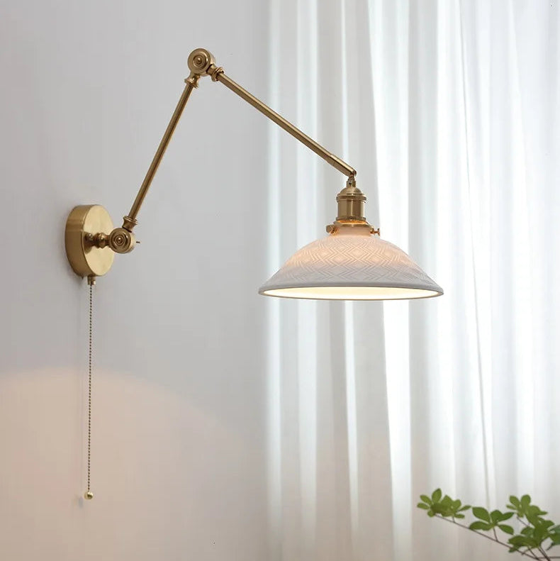 La combinación de cerámica texturizada, detalles de latón y una silueta limpia le da a esta lámpara de pared un estilo minimalista y nostálgico. Su amplio difusor garantiza una distribución uniforme de la luz, perfecta para espacios naturales, escandinavos o minimalistas.