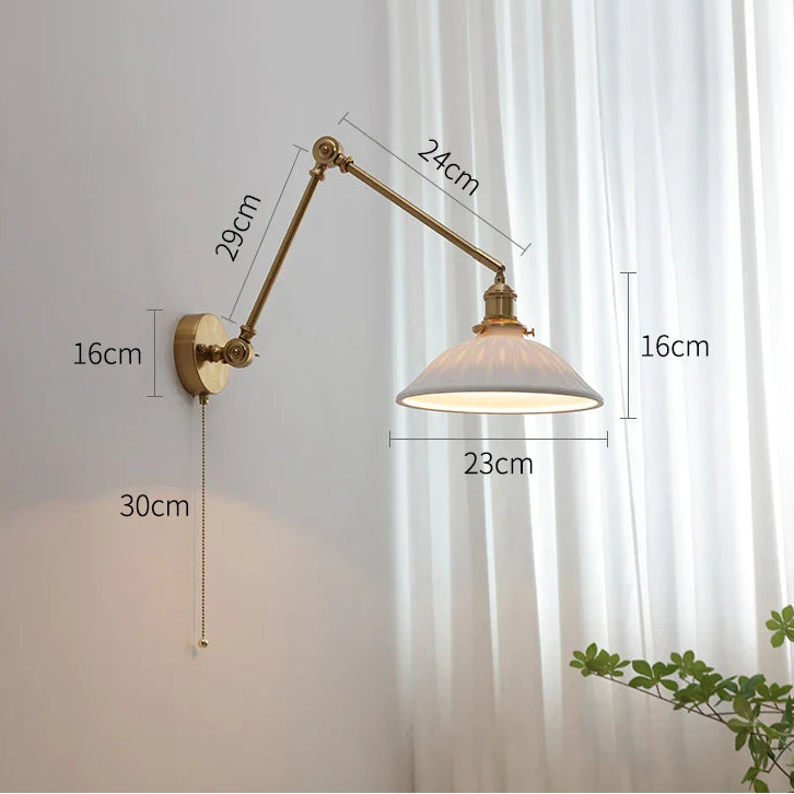 Ya sea como lámpara de lectura en la cama, como luz de acento en el salón o como punto focal en un pasillo, esta lámpara de pared se integra a la perfección y crea una atmósfera tranquila, inspiradora y acogedora. Su interruptor de cadena complementa a la perfección el diseño y realza su encanto retro.