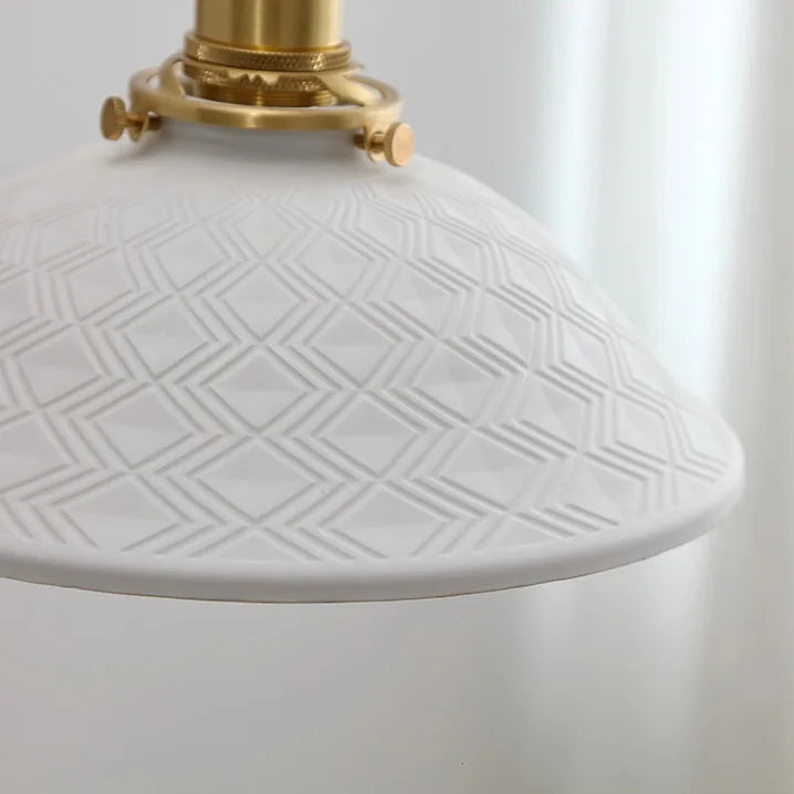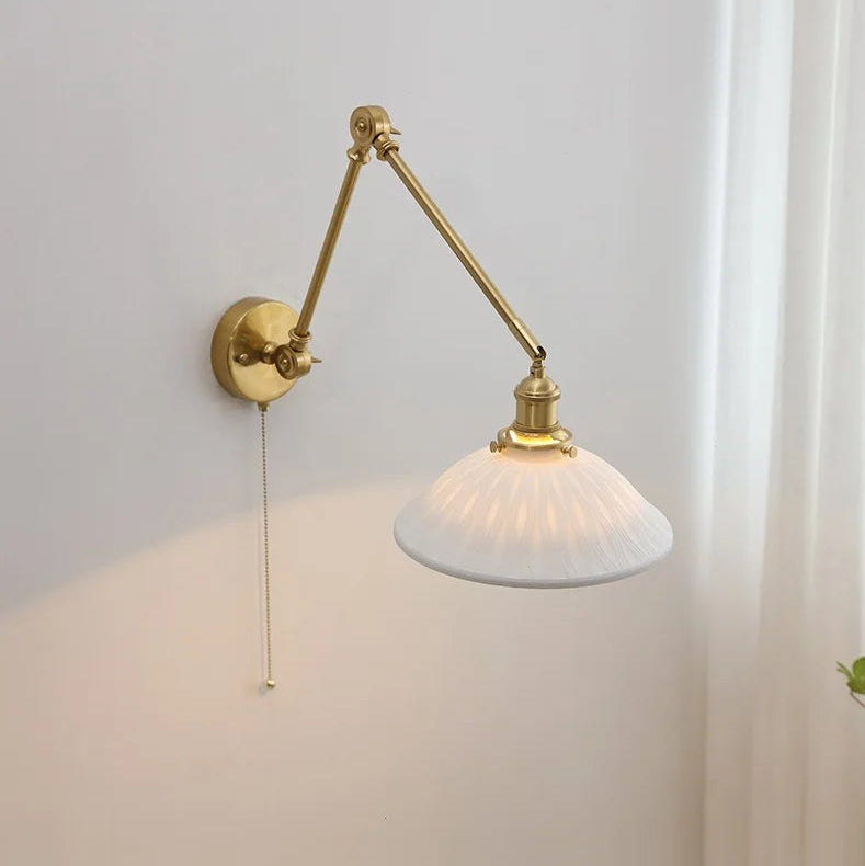 Aplique de pared vintage de latón con gran pantalla de cerámica.