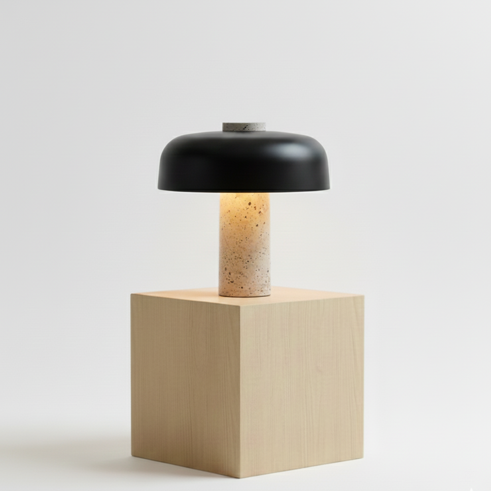 Lámpara de mesa de travertino con forma de hongo