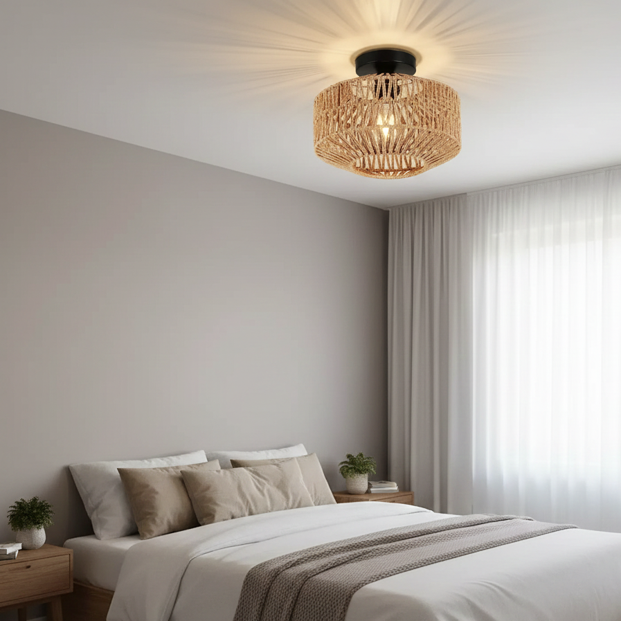 Con su moderno estilo bohemio y su ligereza, esta lámpara de techo se convierte en un auténtico elemento decorativo, capaz de transformar tu hogar en un espacio acogedor y refinado.