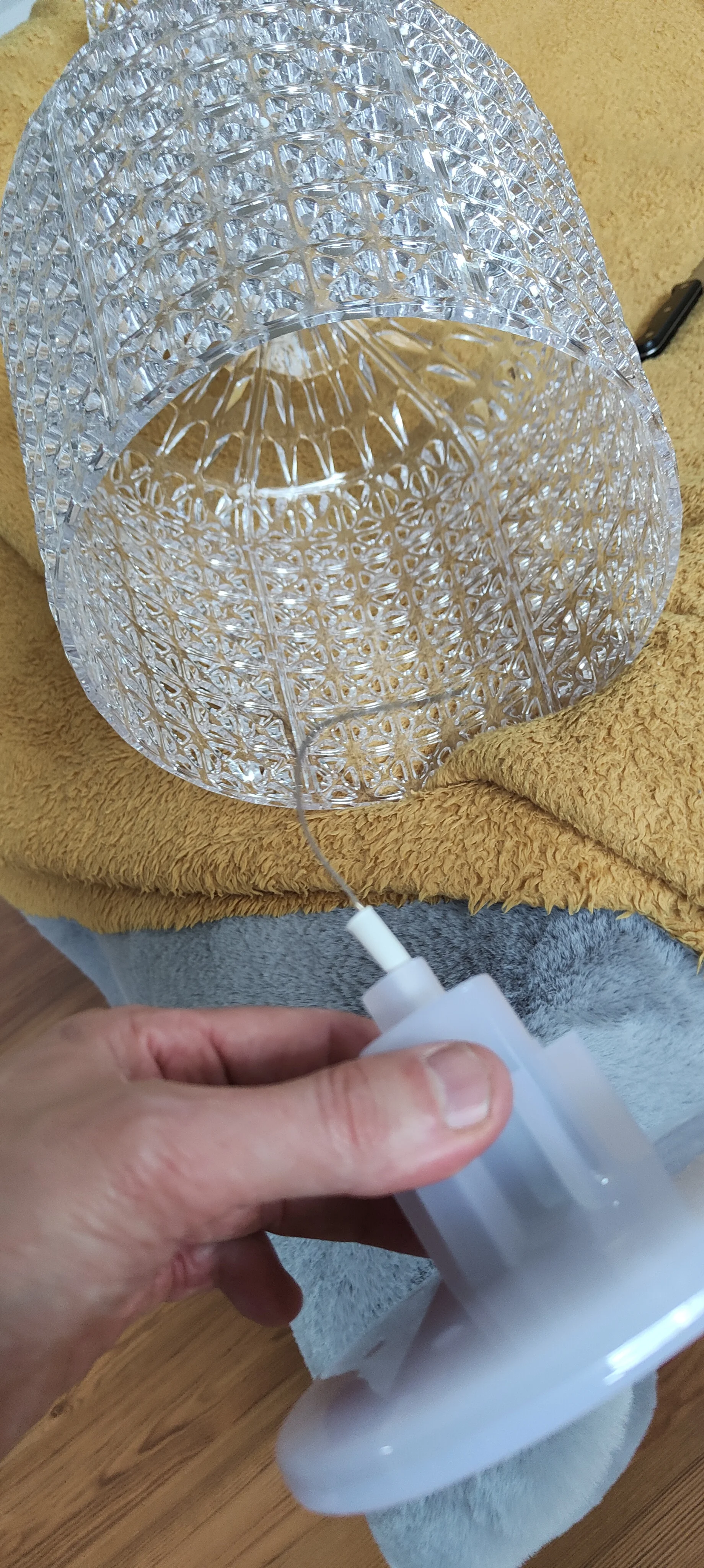 Avec sa hauteur de 48 cm et son diamètre de 30 cm, cette lampe devient un véritable objet décoratif pour une chambre, un salon ou un bureau. Son mélange raffiné d’aluminium et d’acrylique garantit une grande robustesse tout en apportant une touche contemporaine.