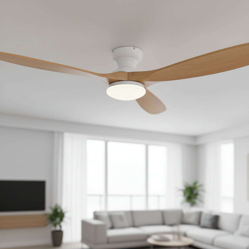 Ventilateur de Plafond avec Éclairage LED – Bois Naturel et Blanc