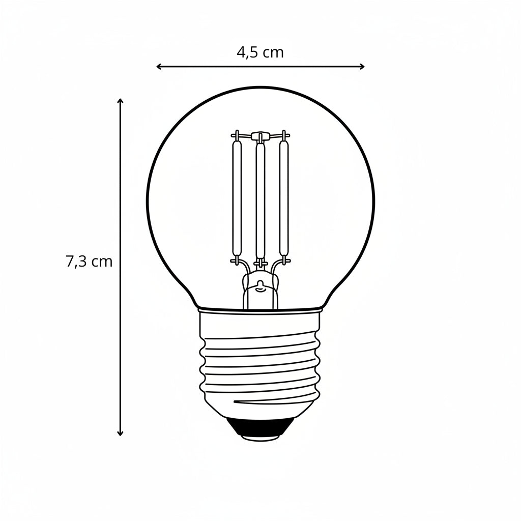 Cette ampoule LED filament E27 G45 est le compromis idéal entre performance et esthétique. Avec sa consommation ultra-réduite de 4W, elle remplace efficacement vos anciennes ampoules énergivores (équivalent environ 40W) sans sacrifier la qualité de lumière.