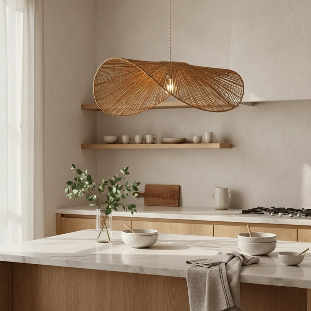 Invitez l’authenticité dans votre intérieur avec la Suspension Rotin Naturelle Artisanale, un luminaire unique façonné à la main. Réalisée en rotin de haute qualité, sa silhouette fluide et organique diffuse une lumière douce et harmonieuse, transformant instantanément l’atmosphère de votre pièce.