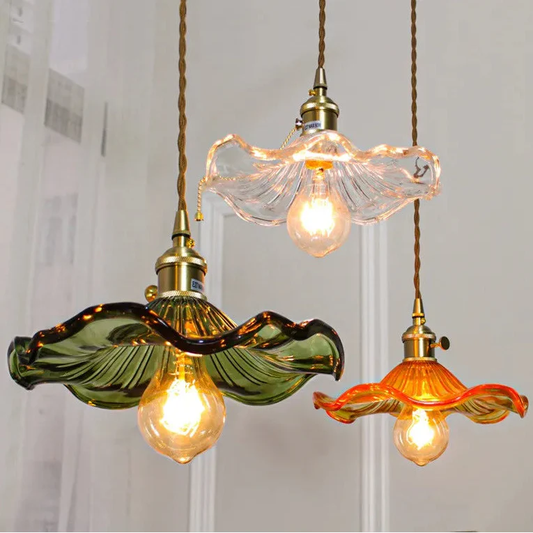 Cette suspension à trois lumières diffuse une lumière chaleureuse et vibrante qui enveloppe immédiatement la pièce et crée une atmosphère accueillante et pleine de vie. Les trois abat-jours en verre ondulé, déclinés en ambre, champagne et émeraude, composent ensemble un jeu de lumière doux et harmonieux, transformant chaque soirée en un décor à la fois apaisant et décoratif. Chaque teinte apporte sa propre nuance et ajoute une profondeur subtile et artistique à l’espace.