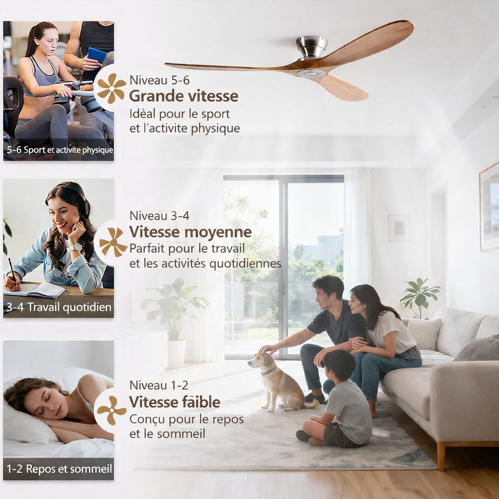 Conçu pour les utilisateurs exigeants, il intègre un moteur CC de pointe assurant un confort acoustique inégalé. Ce ventilateur silencieux plafond se fait oublier, même durant vos nuits d'été, tout en restant un objet de décoration prestigieux. Sa fonction réversible (été/hiver) en fait un investissement durable, optimisant la diffusion de la chaleur durant la saison froide pour des économies d'énergie concrètes.