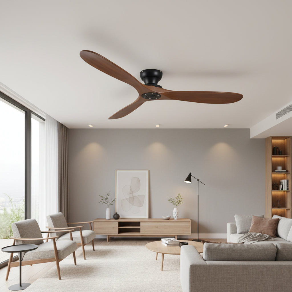 Ventilateur de Plafond en Bois Massif – Bois Foncé et Noir