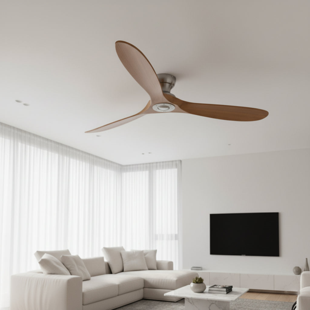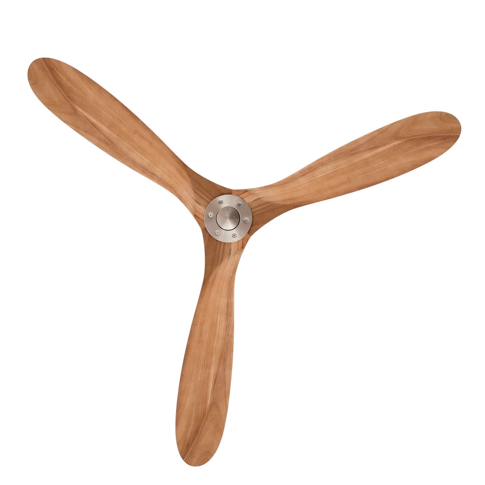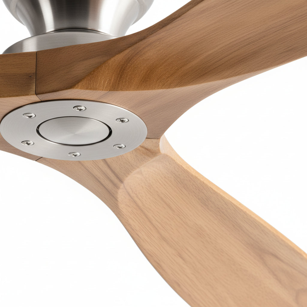 Ventilateur de Plafond en Bois Massif – Bois Naturel et Argent