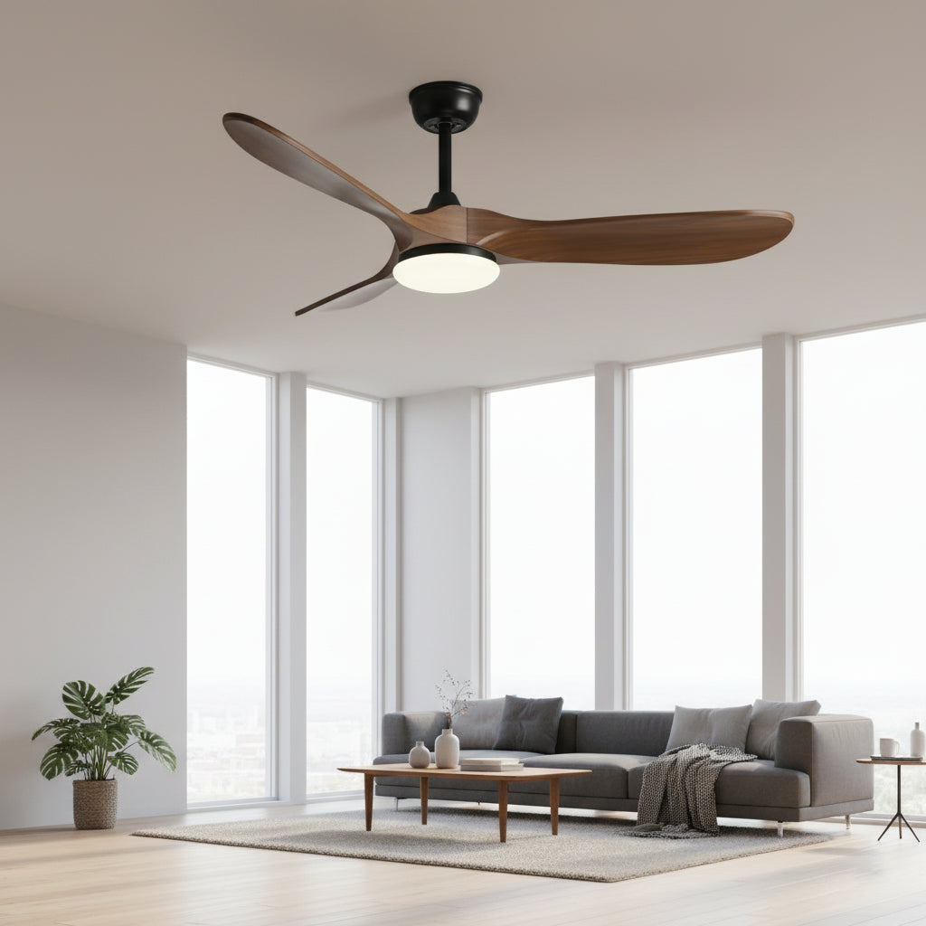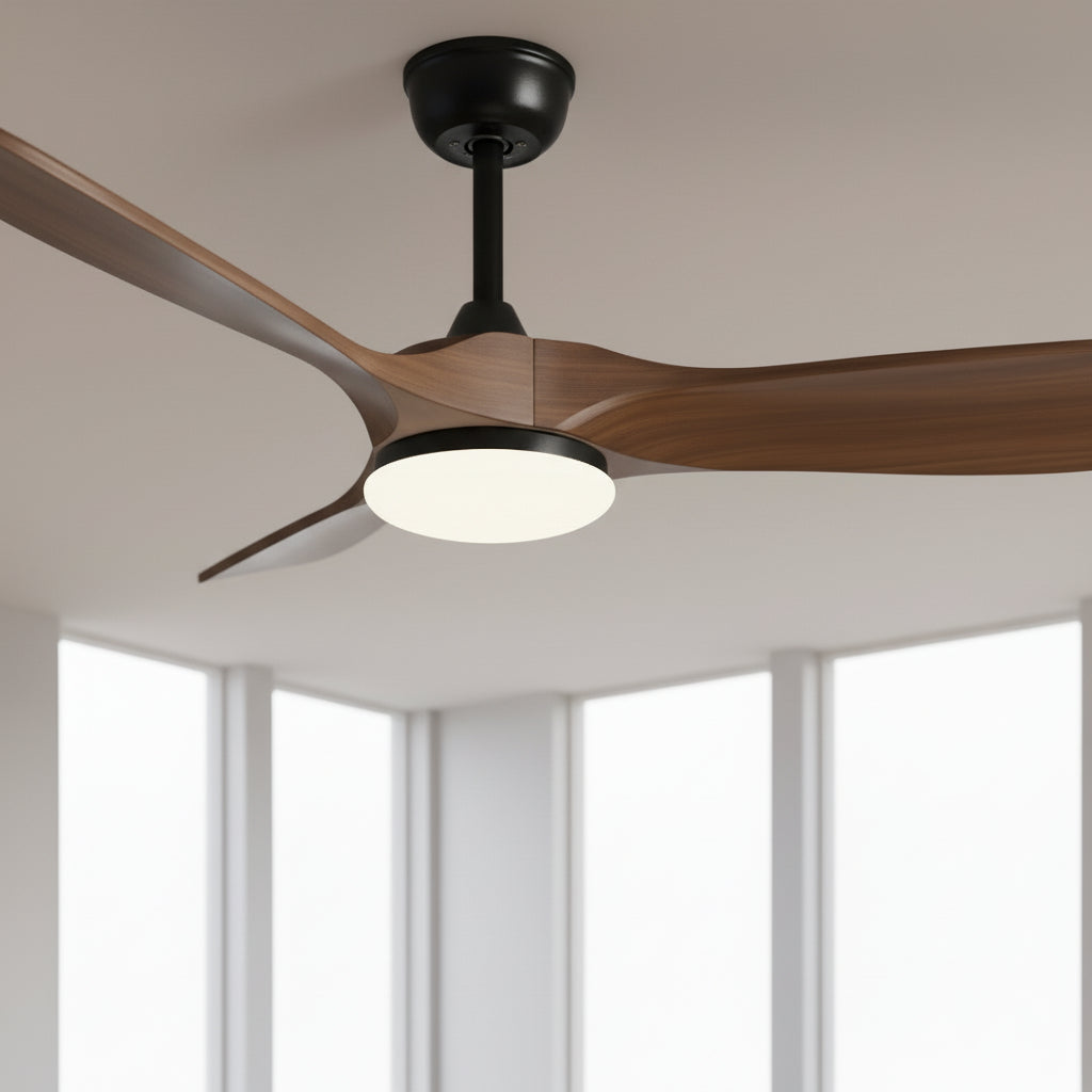 Ventilateur Plafond Silencieux Vintage avec LED - Noir et Bois Foncé