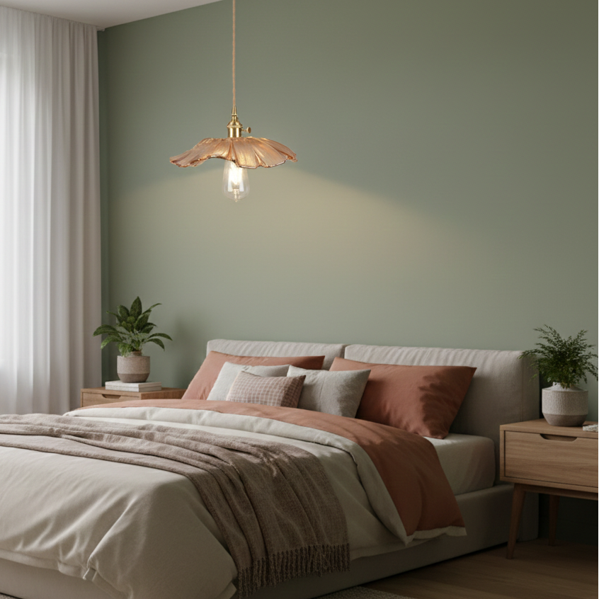 Cette suspension diffuse une lumière chaude et enveloppante, idéale pour créer une atmosphère douce et réconfortante. Son abat-jour en verre sculpté de couleur marron, inspiré de la forme d’une fleur, joue avec les ondes et reliefs pour offrir un jeu subtil de lumière et d’ombres. La transparence légèrement dorée du verre apporte une note vintage délicate, parfaite pour les ambiances calmes et chaleureuses.